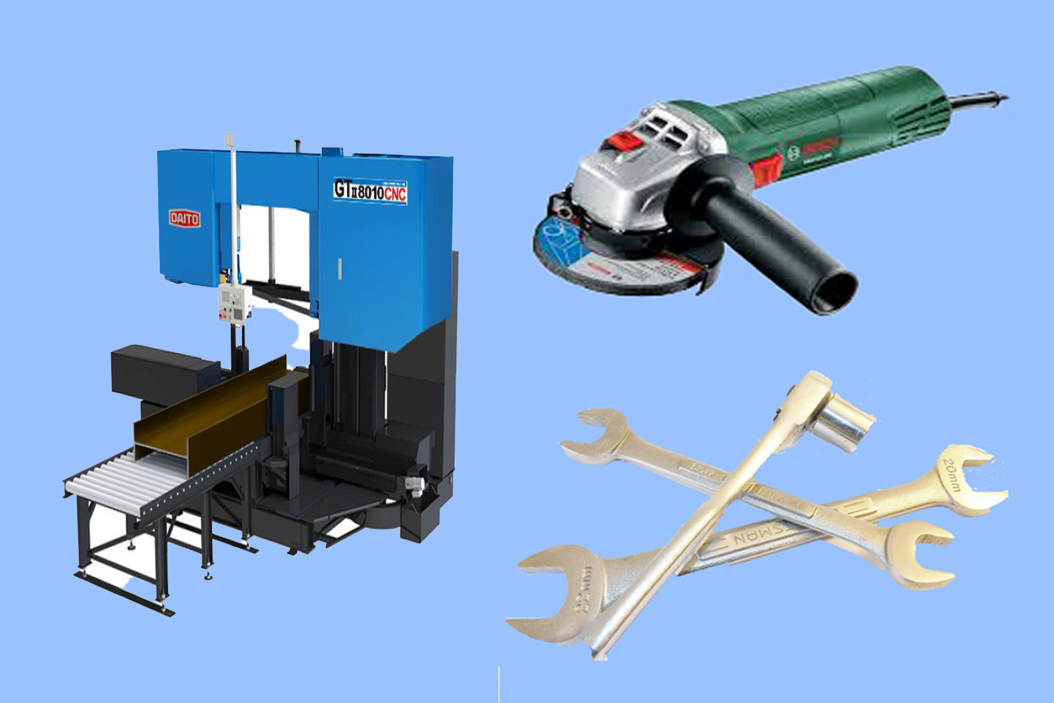 機械・工具・バンドソー、発電機、コンプレッサ、天井クレーンなどの各種工作機械、運搬機器 |